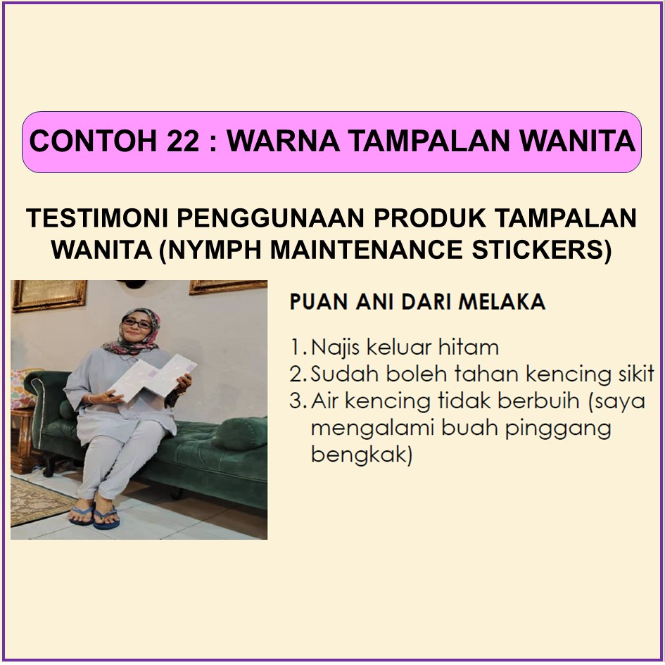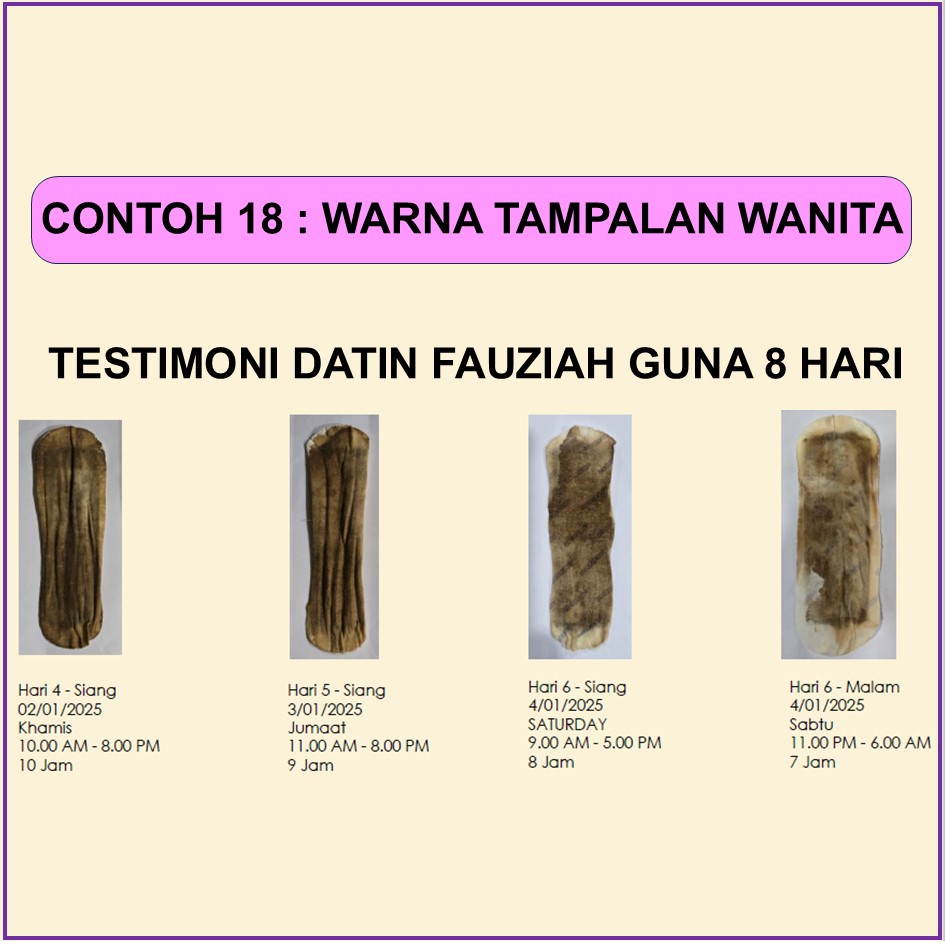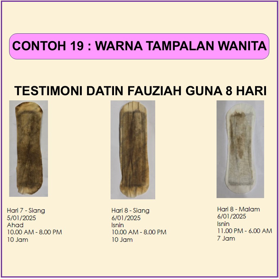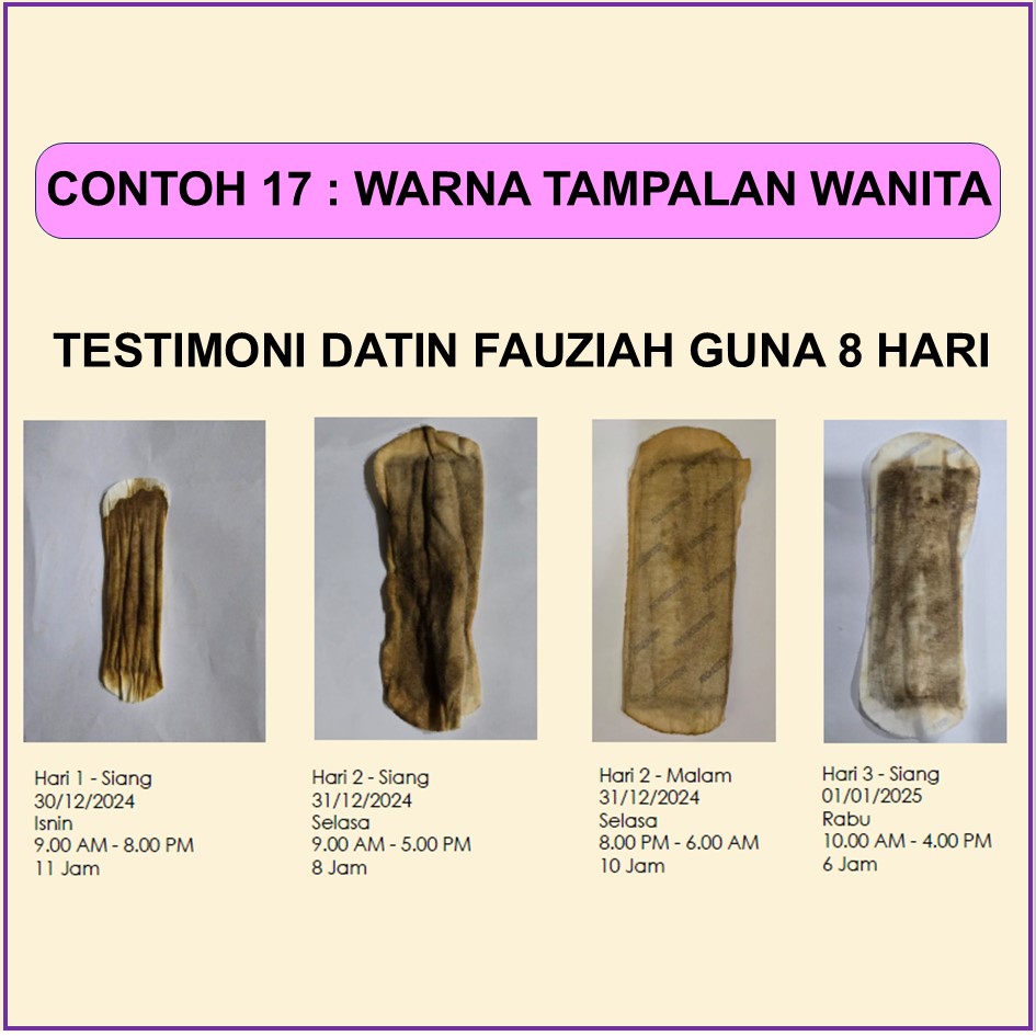 MAKNA WARNA PADA TAMPALAN SIANG WANITA SELEPAS PENGGUNAAN 6-10 JAM