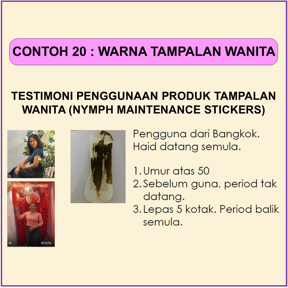MAKNA WARNA PADA TAMPALAN SIANG WANITA SELEPAS PENGGUNAAN 6-10 JAM